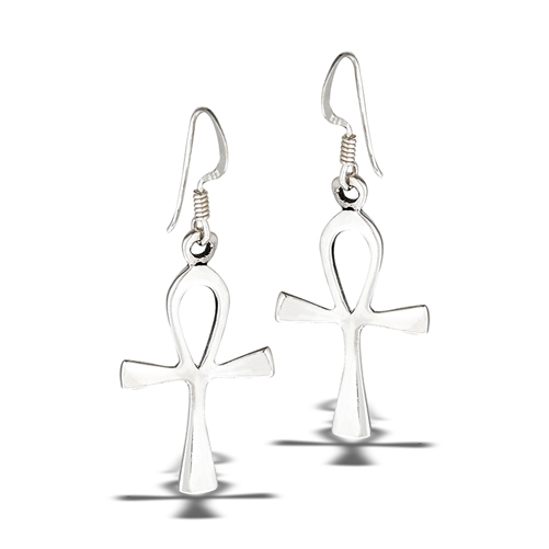 1.3″ | Ankh Sterling Silver Hook Dangle Earrings