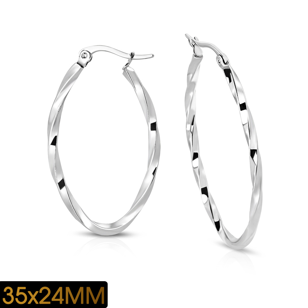 1.4" x 1" | Stainless Steel Twisted Oval Clip Back Earrings (pair) C07015