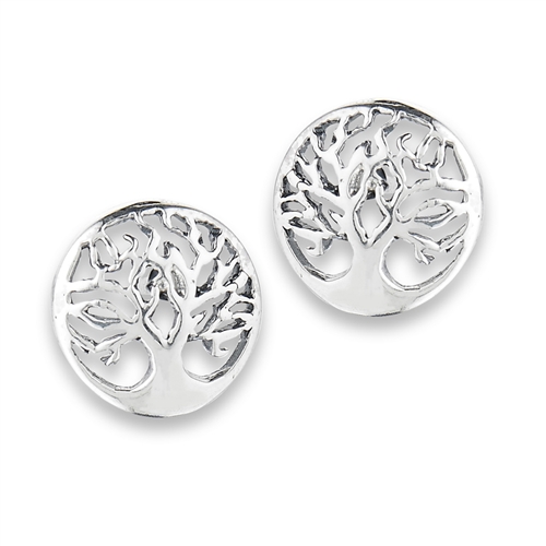10mm | Tree of Life Circle Sterling Silver Post Stud Earrings