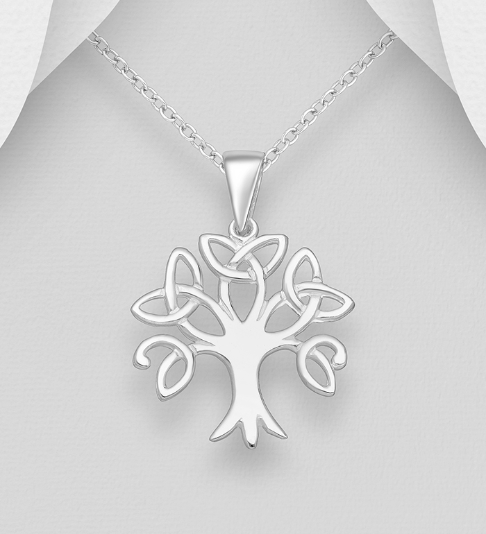 Includes 16" Rhodium Plated Italian Sterling Silver Box Chain. Collection: Celtic Product Type: Pendant Product Design: Celtic, Tree of Life Metal: 925 Sterling Silver Hallmark: 925 Width: 15/16 inches Height: 1 5/16 inches