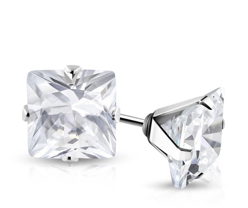 3mm | Stainless Steel Small Square Stud Earrings w/ Clear CZ (pair)