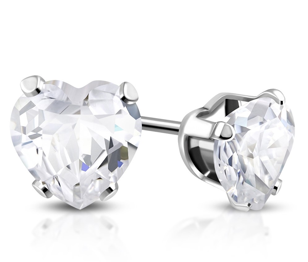 6mm | Stainless Steel Prong-Set Love Heart Stud Earrings w/ Clear CZ (pair)