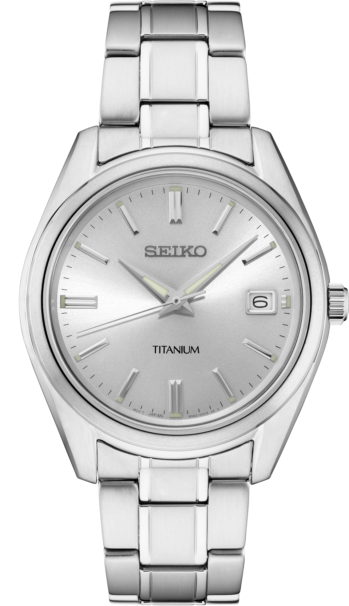 Offering classic dress/sport designs, the Essentials Collection provides the ideal solution for everyday wear. Crafted of durable and light-weight titanium, this perfectly tailored watch features a contemporary minimalist silver sunray dial with date calendar, for a superb blend of clarity and wearability. The sapphire crystal adds superior scratch resistance. 10 bar, 100M Water Resistant