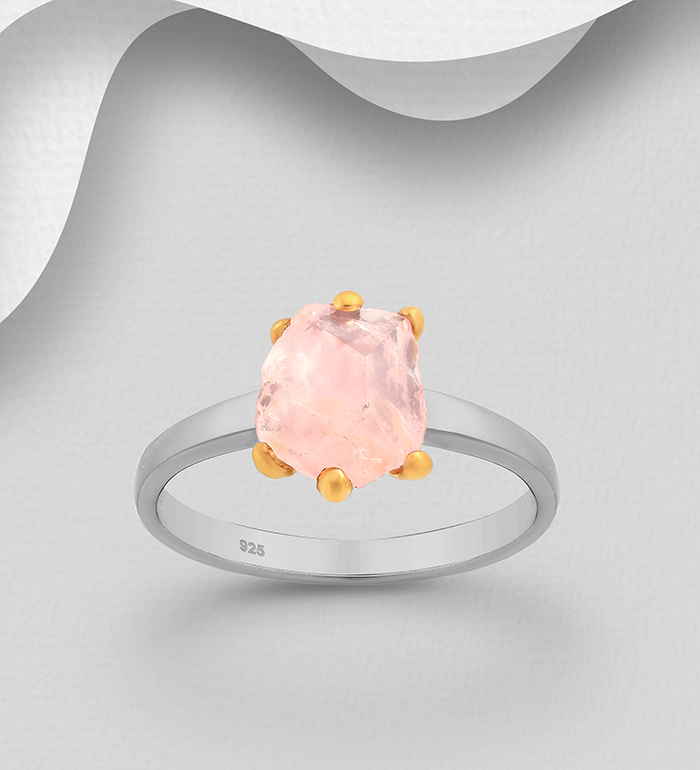 Product Type: Ring Metal: 925 Sterling Silver Gem Stones: Rose Quartz Setting Type: Prong Plating: 3 Micron 22K Yellow Gold, Grey Ruthenium Hallmark: 925 Top Width: 7/16 inches